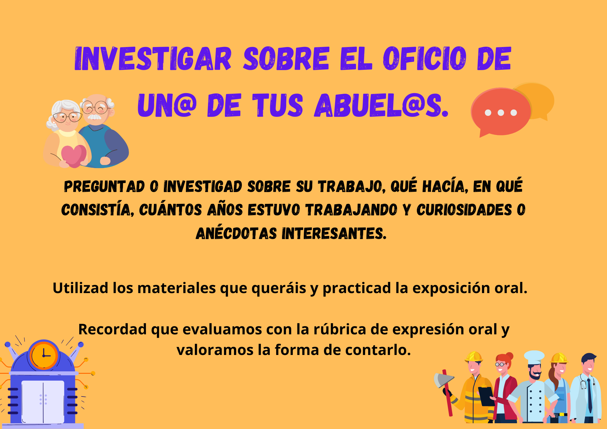 Para conocer un poco más sobre el pasado qué mejor que investigar sobre nuestros abuelos. Queremos saber más sobre sus oficios y aprender sobre ellos.