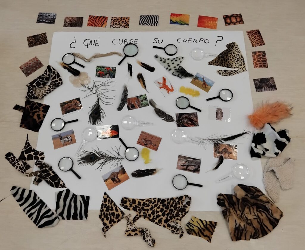Llevamos unas semanas adentrándonos en el mundo animal, ampliando los conocimientos que tienen nuestros alumnos y planteándoles interrogantes que fomentan su curiosidad como por ejemplo:¿qué cubre el cuerpo de los animales?. Observamos con detalle imágenes y materiales, exploraron de forma sensorial las diferentes texturas, clasificamos, jugamos al memori para terminar de una manera creativa realizando la piel del animal elegido individualmente con diferentes técnicas plásticas.