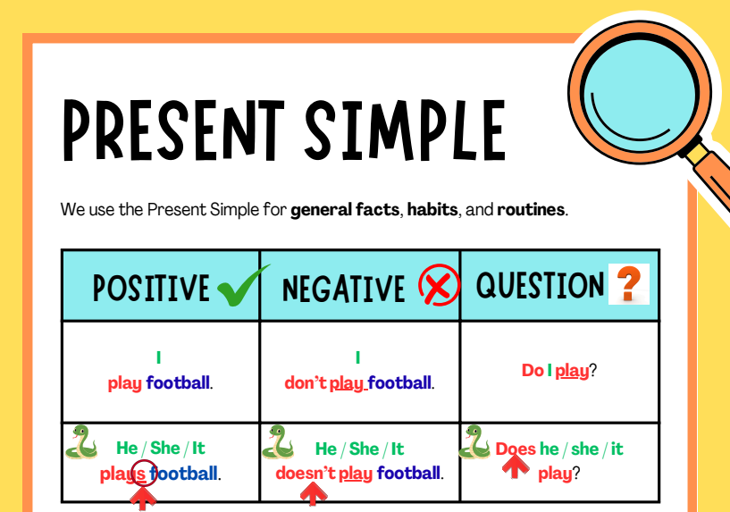 Es importante seguir practicando el Present Simple para no olvidar. Os dejamos el cuadro para repasar.