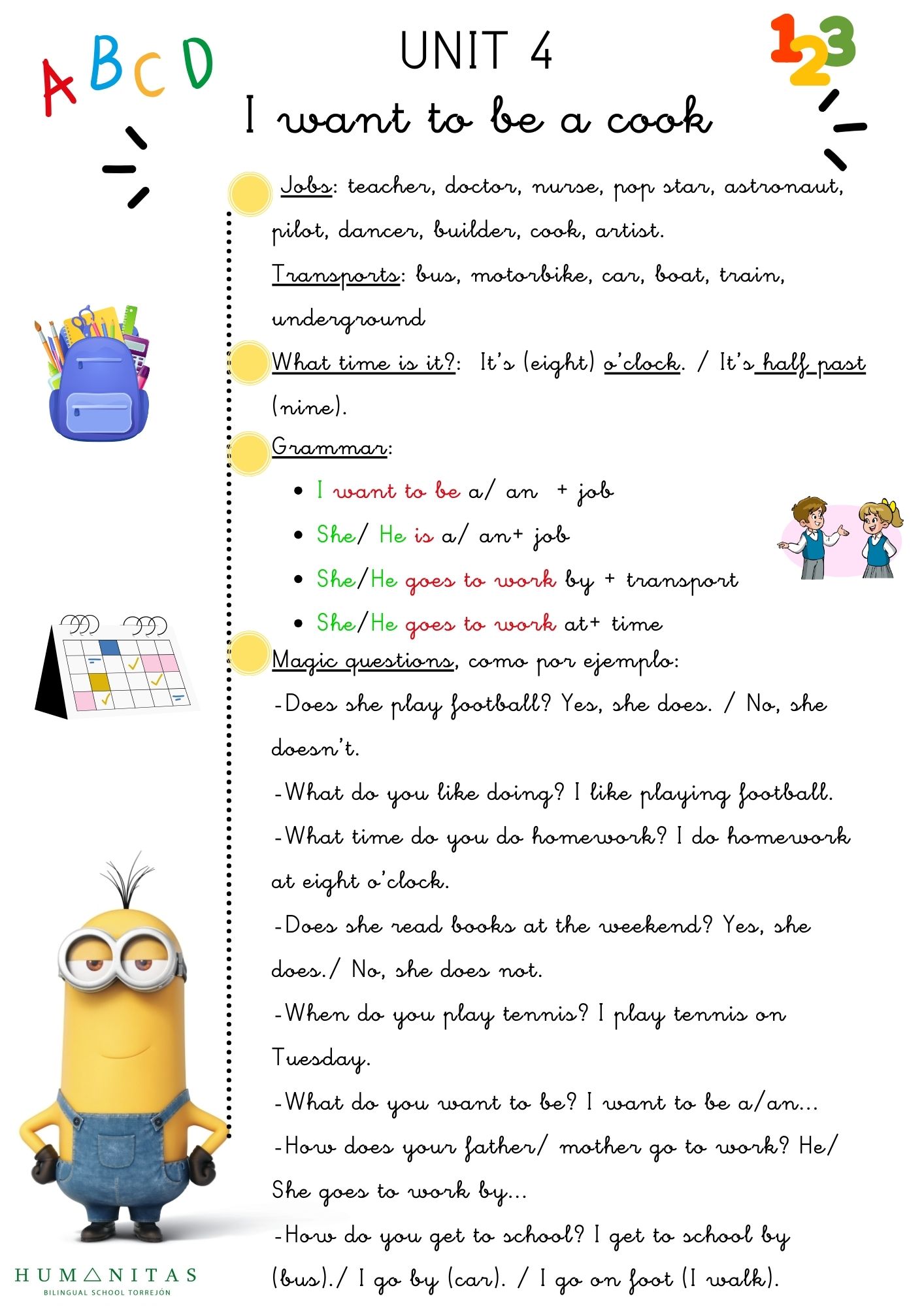 ¡Comenzamos nueva unidad de inglés – UNIT 4: I WANT TO BE A COOK!