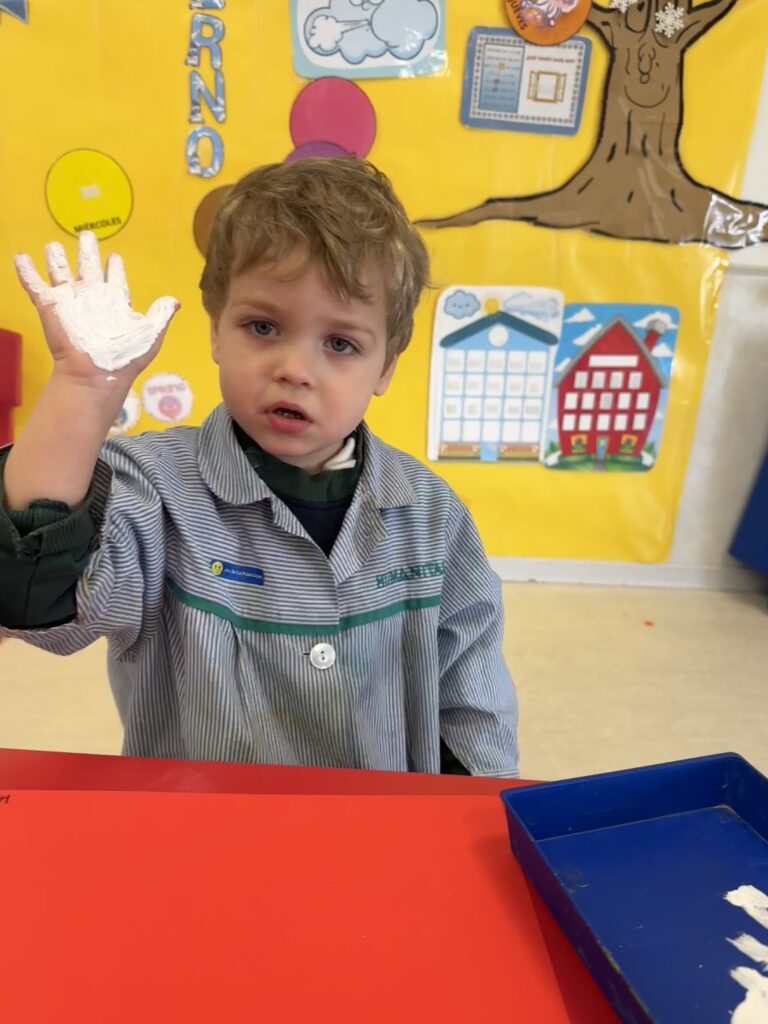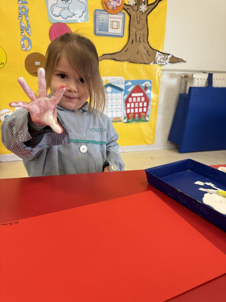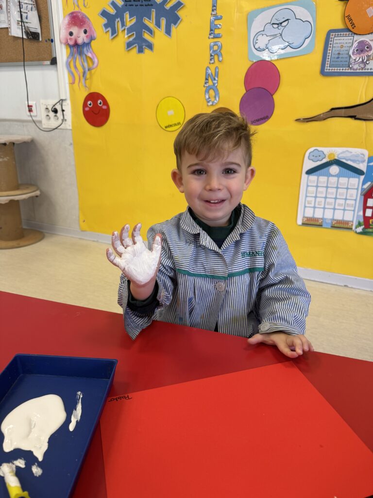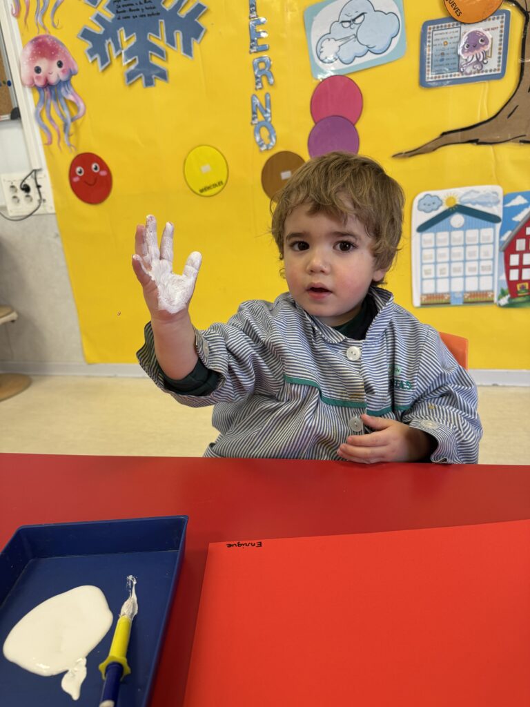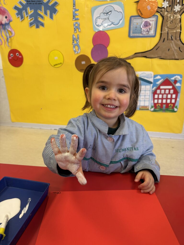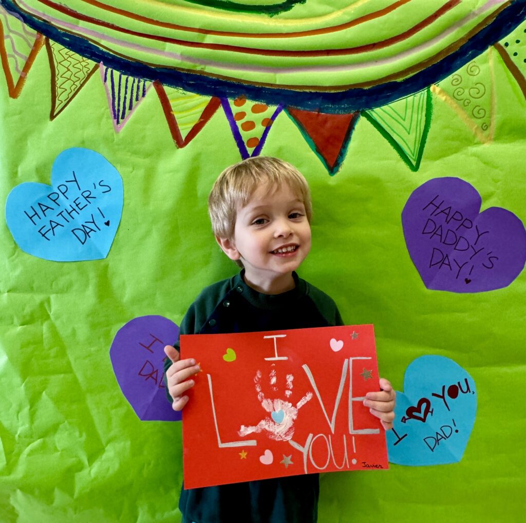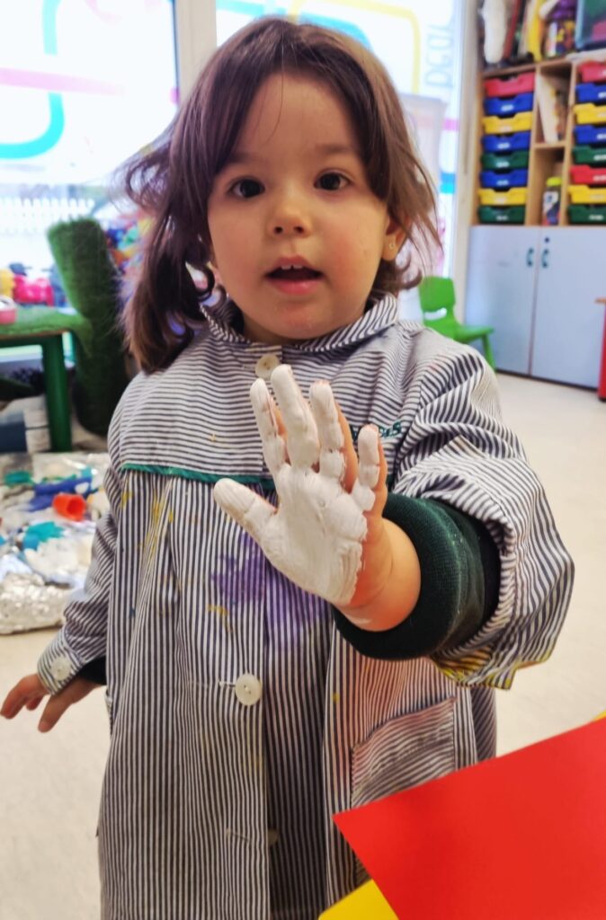 Nuestros pequeños crearon unas adorables tarjetas con la huella de su mano. Con la ayuda de sus profes, escribieron el mensaje “I love you” y decoraron sus tarjetas con pegatinas de corazones y estrellas de muchos colores. ¡Cada tarjeta quedó única, igual que nuestros peques!