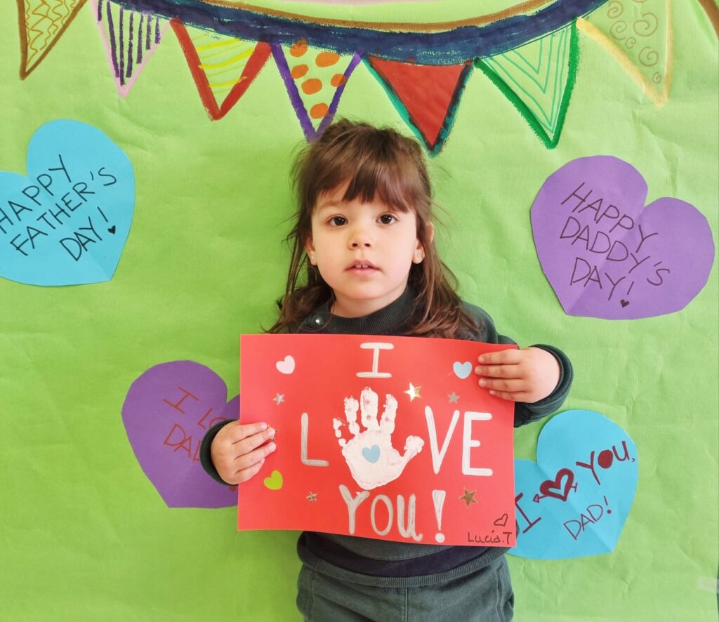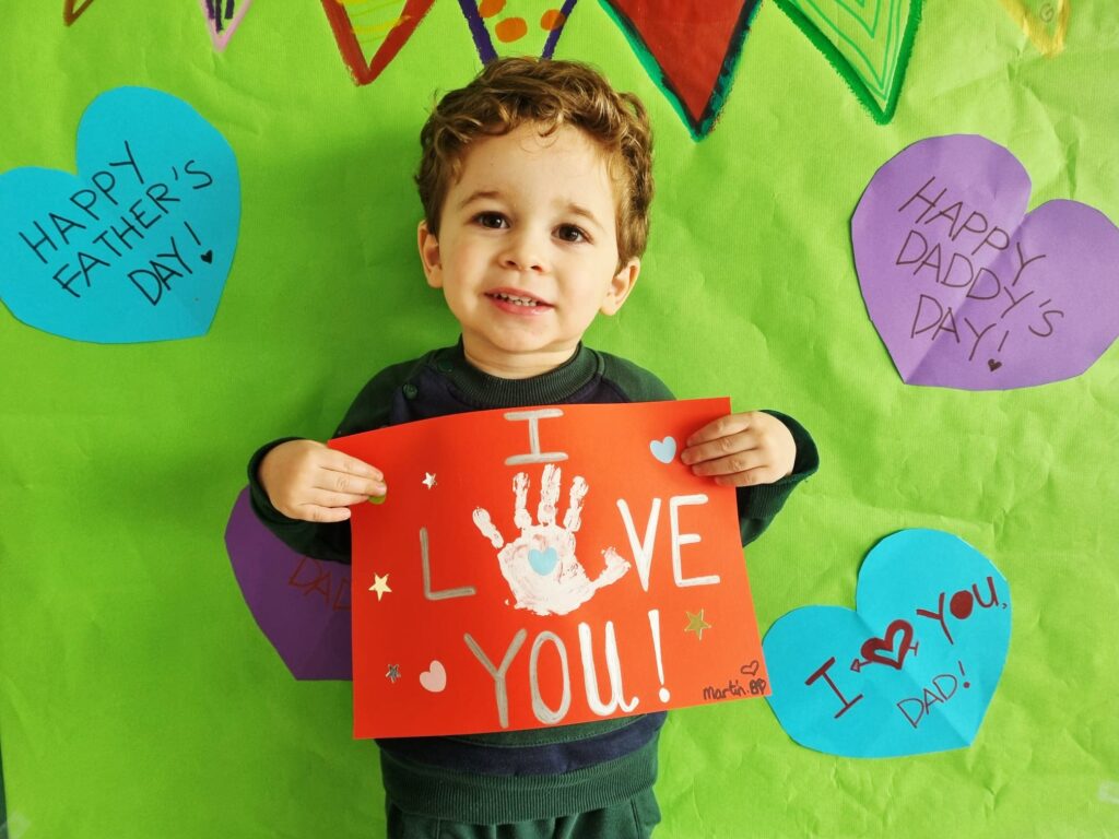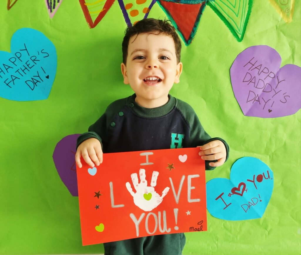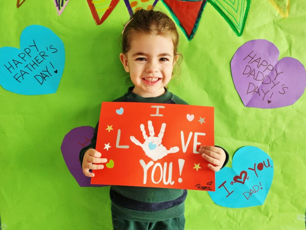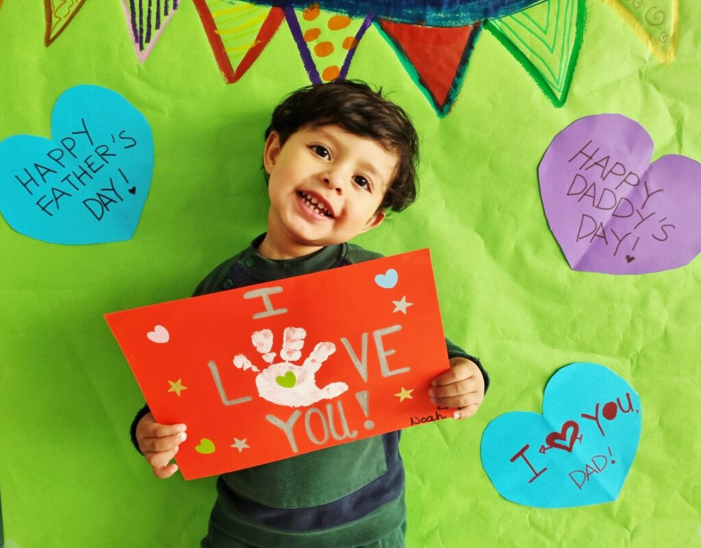 Our little ones created adorable handprint cards for their daddies. With the help of their teachers, the children added the message “I love you” and then decorated their cards using colourful heart and star stickers. Each card was unique—just like our amazing children!