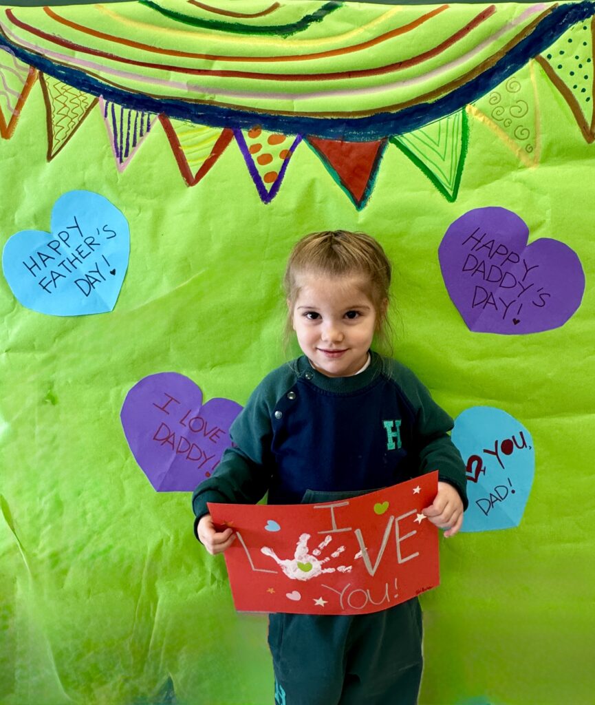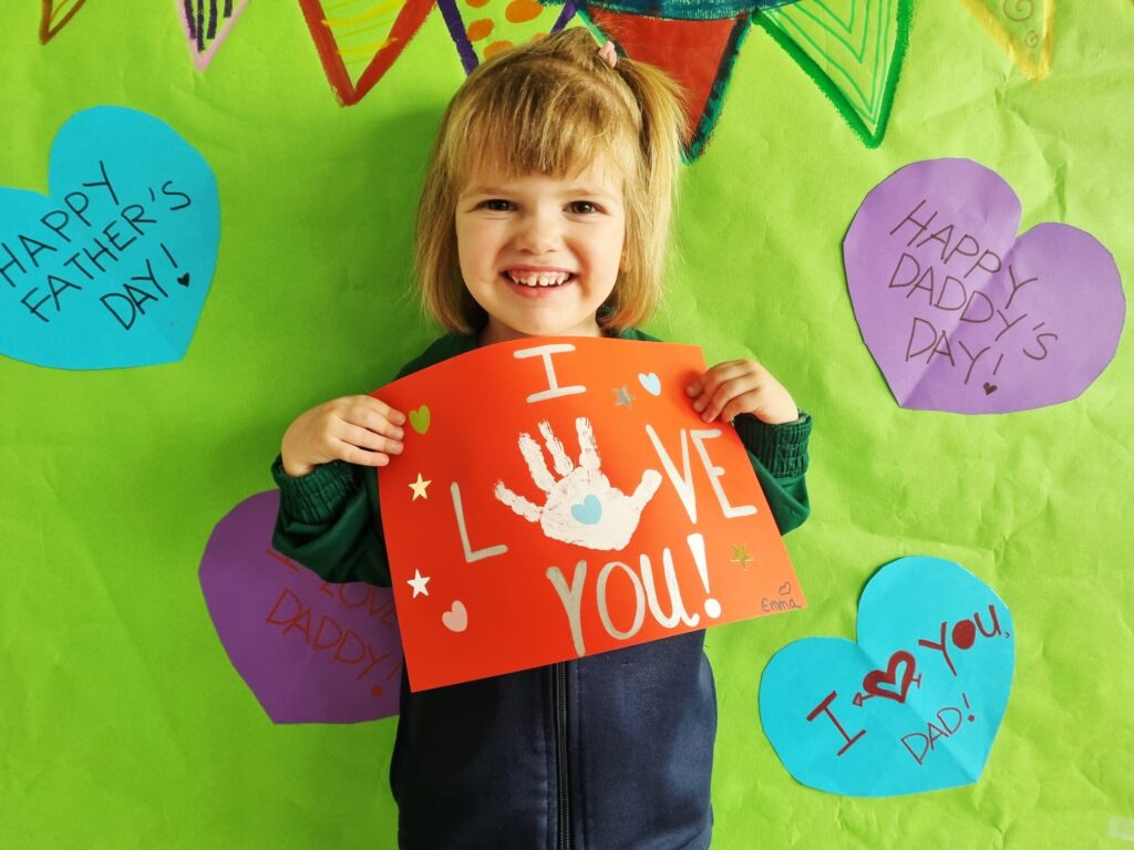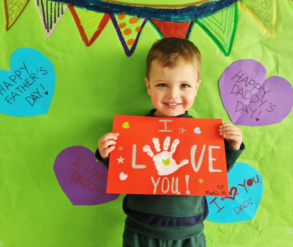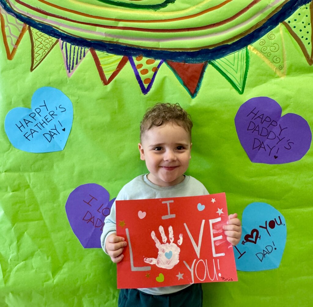 Our little ones created adorable handprint cards for their daddies. With the help of their teachers, the children added the message “I love you” and then decorated their cards using colourful heart and star stickers. Each card was unique—just like our amazing children!