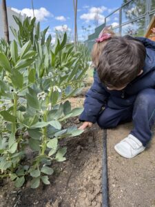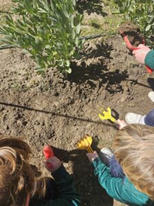 Además, la granjera Emilia ha querido aportar aún más a nuestra aventura y nos ha dejado unas semillas de rabanitos para plantar en el huerto del colegio. Ha sido nuestra primer acercamiento al huerto y nos ha gustado muchísimo. Poco a poco iremos cuidando y observando su crecimiento a lo largo de este proyecto, aprendiendo la importancia del cuidado diario y la paciencia. Cuando estén listos, los rabanitos nos servirán para ayudar a Emilia a alimentar a algunos de los animales de la granja como los conejos o las gallinas, ¡qué ganas tenemos!